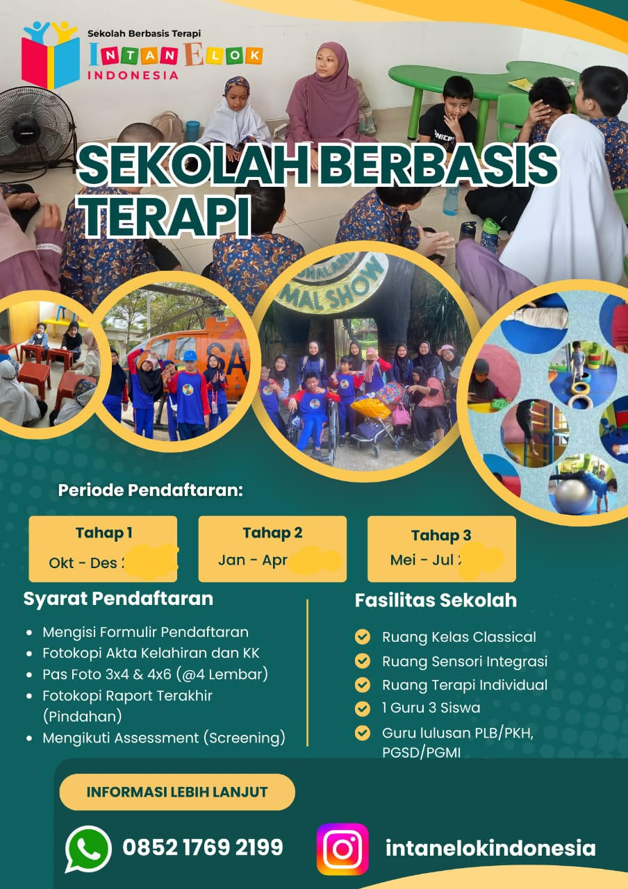 PT INTAN ELOK INDONESIA jawabannya! Segala kebutuhan tumbuh kembang anak dan sekolah kebutuhan khusus akan tersedia untuk buah hati Anda dengan penanganan langsung dari ahlinya. Selain itu, kurikulum yang dibuat telah disesuaikan dengan siswa sehingga tiap murid mendapat pengajaran yang maksimal tanpa terkecuali.